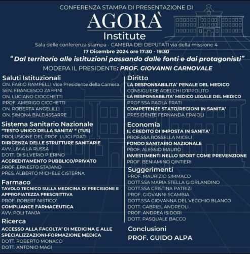 A press conference was held yesterday, Dec. 17, at the Chamber of Deputies and on the initiative of Hon. Fabio Rampelli together with Sen. Francesco Zaffini and Hon. Luciano Ciocchetti, to present the activities that the Agora association, president Dr. Giovanni Carnovale, has undertaken in the medical field and in research for precision medicine and new pharmaceutical technologies that are being developed worldwide.