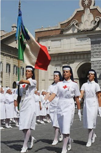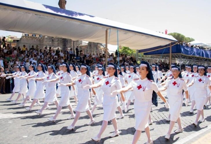 Si avvicina il 2 giugno che è per il Paese l’anniversario della nascita dello Stato italiano nella sua forma repubblicana, celebrata per la prima volta nel 1947 e nell’ anno successivo con la prima parata militare a Roma in via dei Fori Imperiali. Dobbiamo però aspettare il 1950 per vederla inserita stabilmente nel protocollo delle nostre celebrazioni. Una cerimonia con una sua ritualità che, nel tentativo di rafforzare l’identità nazionale, si è arricchita negli anni di numerose novità e new entry come l’introduzione di gruppi di bandiere delle formazioni che parteciparono alla Guerra di Liberazione, la presenza dei sindaci e degli atleti paralimpici e quella, sempre più numerosa, di donne in divisa. Una giornata che con il tempo ha subito diverse trasformazioni, riflettendo i cambiamenti sociali, economici e politici che hanno dato sempre meno rilievo alla celebrazione prevalentemente militare con sfilate di mezzi e forze armate introducendo il ruolo della Protezione Civile e gli uomini e le donne impegnati in missioni di pace. Un ruolo di rilievo nella Parata va al corpo delle Infermiere volontarie della Croce Rossa Italiana, conosciute dall’immaginario collettivo con il nome di Crocerossine che. insieme ai Bersaglieri, raccolgono lo scroscio di applausi più fragoroso!