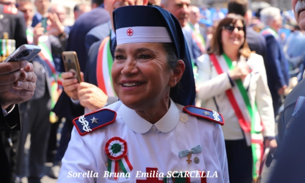 Sorella Bruna Emilia Scarcella il 2 giugno siederà vicino alle autorità e al Presidente Mattarella e, quando sfileranno le Sue Crocerossine, si alzerà in piedi facendo orgogliosamente il saluto militare sciogliendosi in un sorriso orgoglioso tra un fragore di applausi e il cielo azzurro solcato dalle scie delle frecce tricolori.