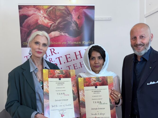Zeinab ha presentato il suo libro, che raccoglie 36 testimonianze di donne che hanno tentato di ribellarsi al regime rischiando la vita, ma loro preferiscono la morte al silenzio, assieme all’anteprima del suo film documentario Shot the voice of freedom che documenta anche la disperazione e la lotta senza voce delle donne afghane. Zeinab è stata in Italia, a Roma all’ interno dello Speciale dedicato all’Afghanistan del Festival TEHR , con da La rete del caffé sospeso, la rete che unisce i Festival Internazionali che parlano di diritti umani, dando voce a chi non ne ha. Il Festival TEHR, (Thematic Exibithion oh human rights) Festival che dirigo da 9 anni, ha ospitato Zeinab per tre giornate di eventi in diversi luoghi della Capital, divulgando la sua la storia, il suo impegno e il suo lavoro, attraverso incontri con pubblico e con i media. Un grande opportunità umana, sociale, intellettuale, culturale quella di ascoltare la voce e la verità di Zeinab che ha commosso, indignato, interessato, appassionato, arricchito di conoscenza e umanità chi l’ha conosciuta ed ascoltata. Assieme a me, ad accompagnare e condurre gli incontri con Zeinab ci sono state Laura Iucci responsabile UNHCR, (l’agenzia delle Nazioni Unite che si occupa di rifugiati), la giornalista Angela Caponetto, inviata nei paesi più critici ed instabili di oggi, Giorgia Pietropaoli giornalista esperta di problematiche dei Paesi del Medioriente, la Rete NOBAVAGLIO che contrasta ogni tipo di censura alla libertà di opinione.